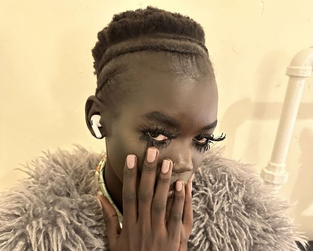 Jin Soon created the unexpected opaque, neutral glossy nails for the Marc Jacobs FW24 Runway.