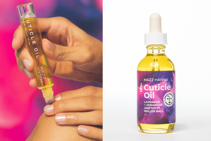 Mazz Hanna Cuticle Oil in retail size (left) and backbar size (right)