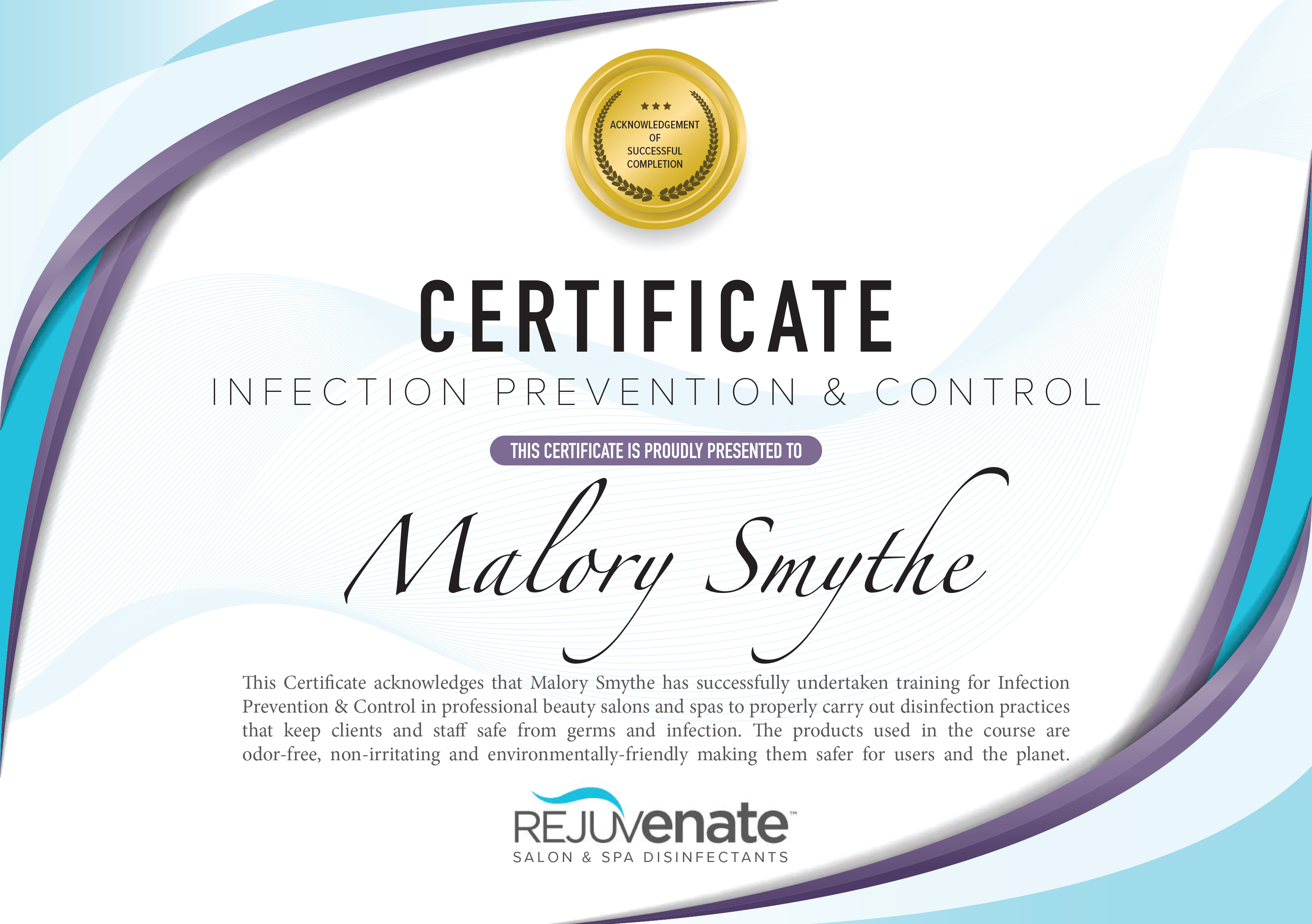 Get your certification today by taking the free 45-minute online educational module by Rejuvenate™ disinfectants and display it proudly in your salon.